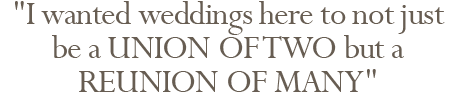 I wanted weddings here to not just be a UNION OF TWO but a REUNION OF MANY.